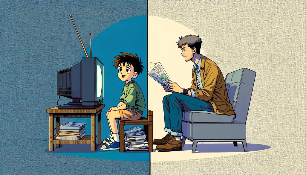 之后来到了《天鹰战士》在上海的电视台(忘了是哪个台了)开播的前一周左右时间。我记得是一个夏天,那位表姐又来我家做客,在临走时,她有些随意地和我说了一句:「下周有部动画片,《天鹰战士》,你可以看看。」等送走她后,我拿起了《每周广播电视报》(当时上海地区发行的刊载每一周电视节目时间表的报刊),哦,是有那么一档即将开播的,好像是傍晚时段的动画。